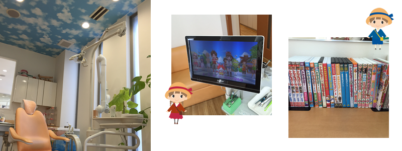 最初は泣いてしまうお子さんもいますが、何をされるのかわかって安心できると、自分から診察室の椅子にすわって準備するようになります。アニメのDVDを選んだり、歯ブラシの色を選んだり・・・。