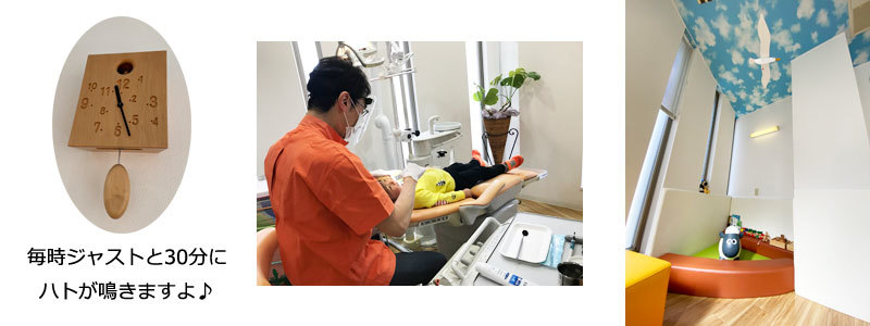 こどもにきれいな歯をプレゼントしたいというお父さん・お母さんと同じ気持ちで診療しています。ですから、お子さんがまた来たいと思ってもらえるように、怖いイメージを与えないようにしています。